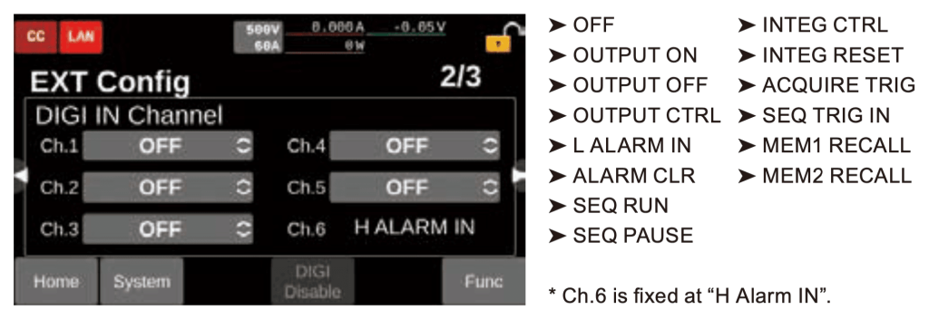 | 저장 항목 | CV, CC, CP 각 모드에서의 설정값, 보호 기능 설정값, IR 설정값 | ||