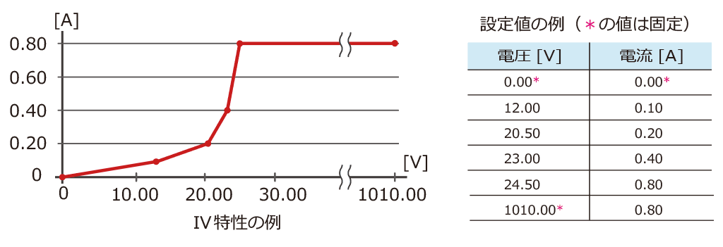 | 임의 IV 특성 (ARB) 모드 | I-V 특성상의 임의 전압값과 전류값을 여러 개 지정하여 임의 부하 특성을 설정할 수 있습니다. |