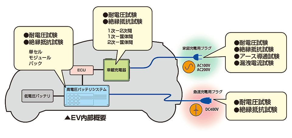 AC/DC 양쪽 대응! EV 배터리부터 차재 충전기, 충전 커넥터까지!