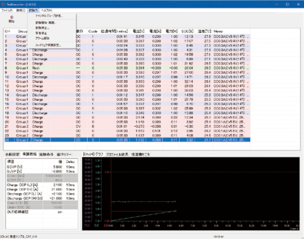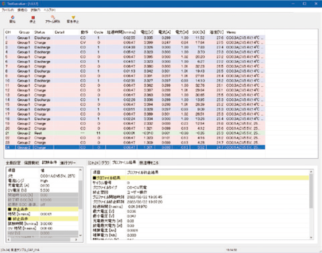 Test Executive는 PFX2731S의 각 채널에 Test Condition Editor에서 작성한 프로젝트(시험 조건)를 할당하여 충방전 시험을 실행하는 프로그램입니다.